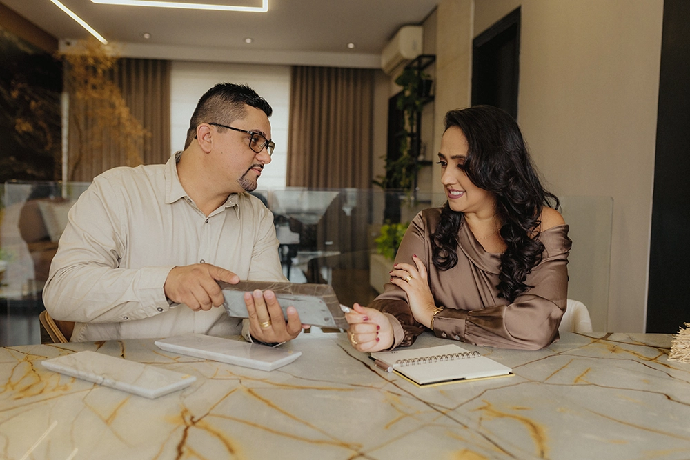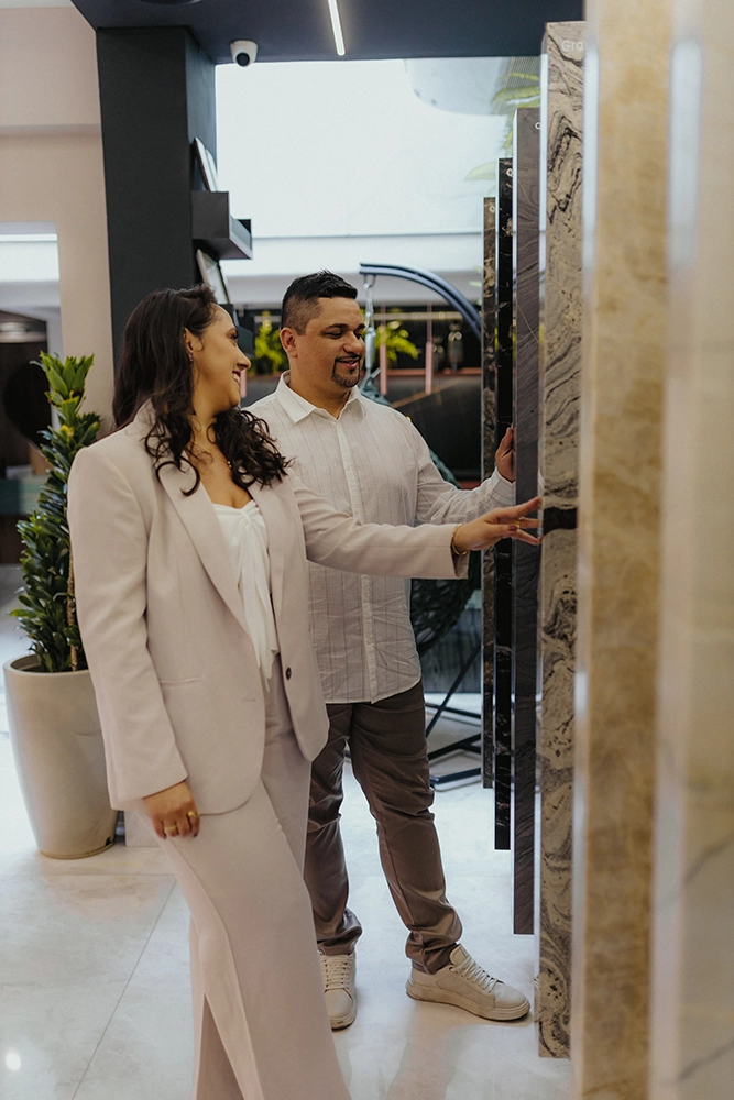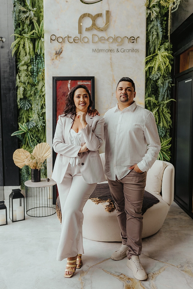 Há dez anos à frente da Portela Designer, Aline e Rafael transformaram um sonho em uma marca sólida no universo das rochas naturais. Mais do que uma marmoraria, criaram uma loja sensorial, onde cada pedra carrega uma história e cada projeto é pensado para despertar emoção, presença e significado.